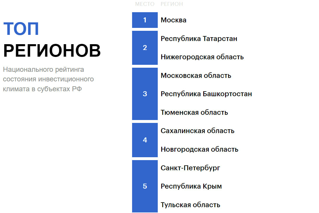 Москва в шестой раз стала лидером рейтинга, а третью строчку заняли Республика Башкортостан, Московская и Тюменская области.