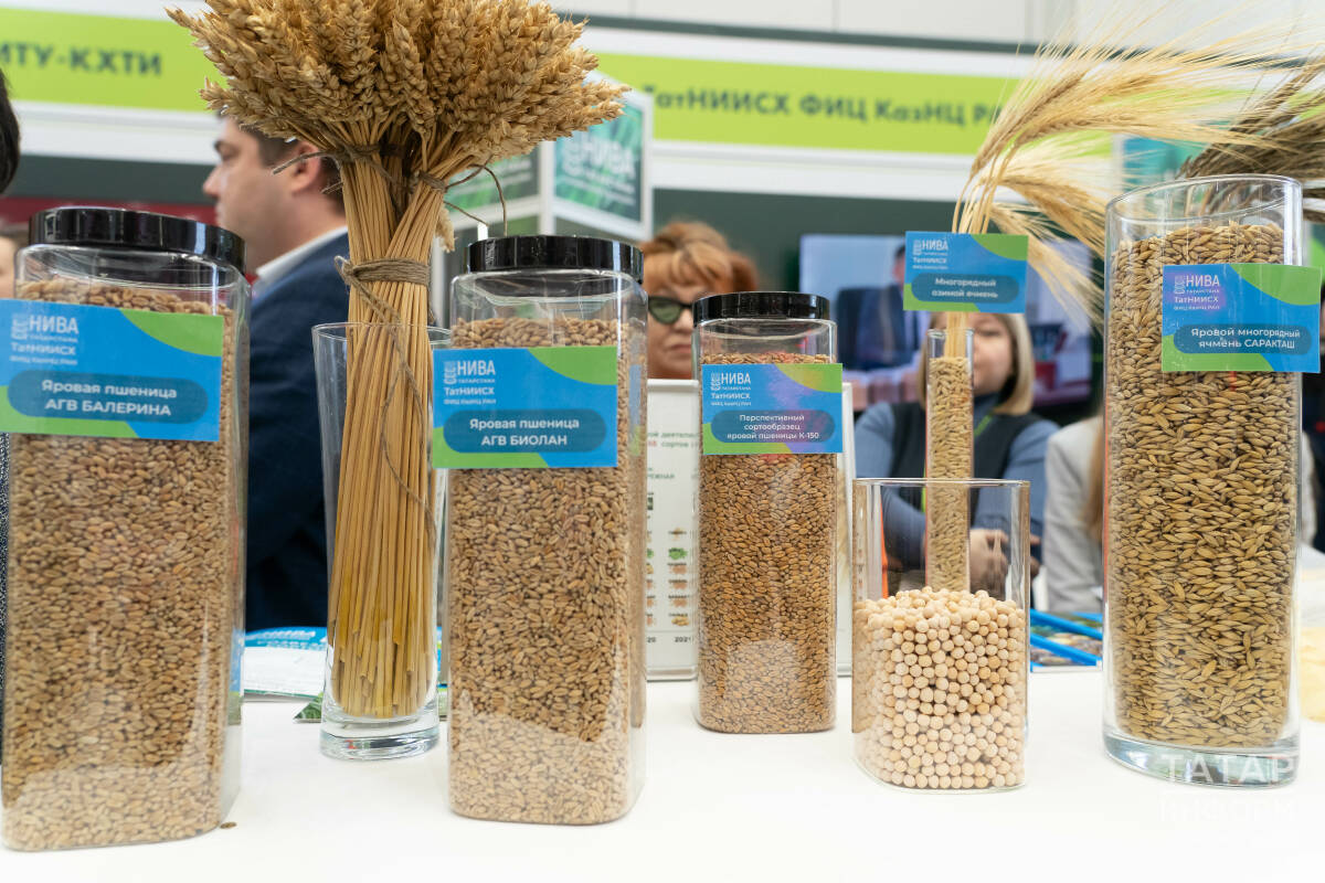 У стенда Татарского НИИ сельского хозяйства руководителя республики ознакомили с результатами селекции сельскохозяйственных культур, а на площадке Ассоциации «Элитные смена Татарстана» – с концепцией по локализации производства семян.