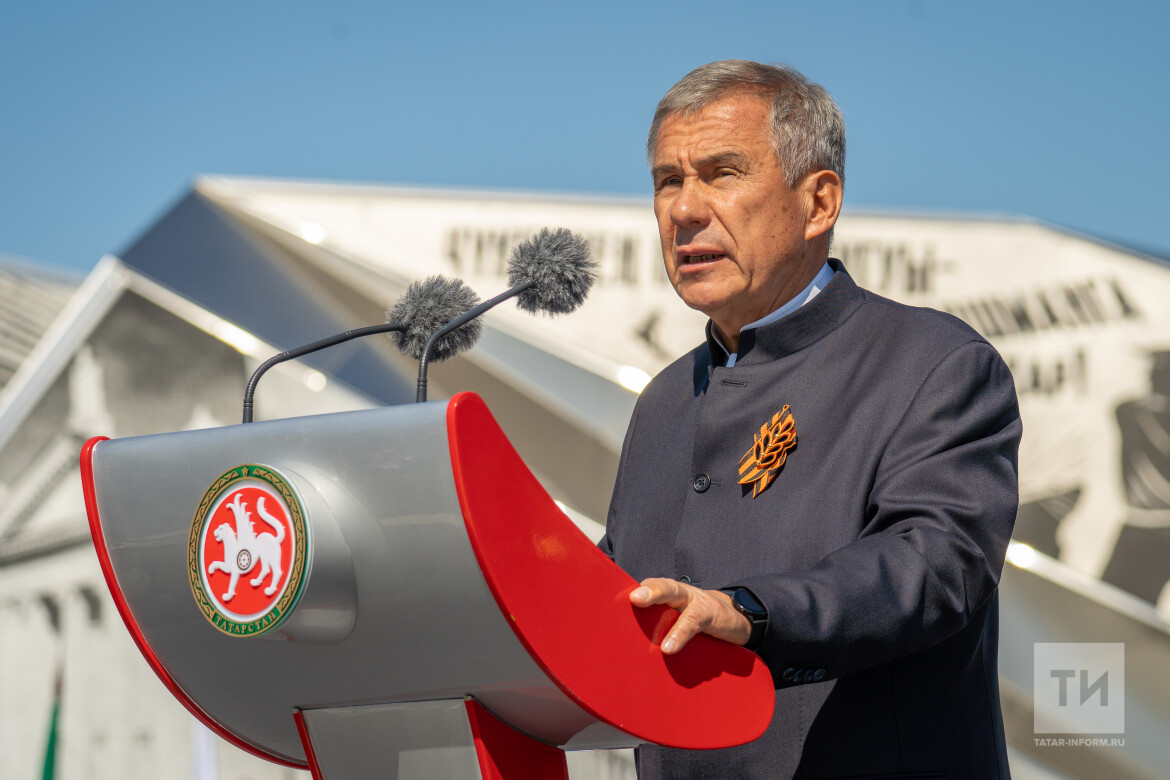 «Открытие стелы „Казань — город трудовой доблести“ — это историческое событие для Татарстана и страны в целом. Республика в годы Великой Отечественной войны была важным тыловым центром страны. Тогда в наш регион были эвакуированы более 70 предприятий. Для фронта производились свыше 600 наименований оружия, боеприпасов и снаряжения, выпускались самолеты, авиамоторы, снаряды для артиллерии и стрелкового оружия и многое другое. На пределе возможностей работали женщины, дети и пожилые люди. Главным стал лозунг „Все для фронта, все для Победы“», — сказал Раис Татарстана.