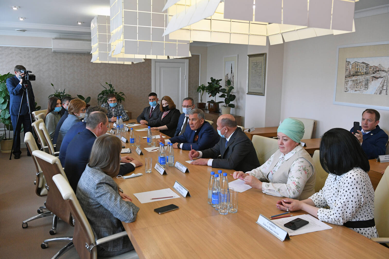 Также Президент Татарстана встретился с участниками круглого стола «Перспективы развития национального радио». Рустам Минниханов поздравил представителей регионального радиовещания с профессиональным праздником — напомним, сегодня в стране отмечается День радио.