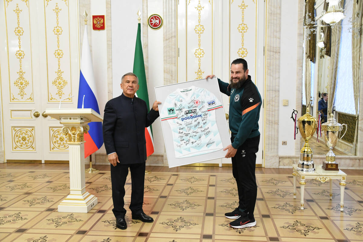 Татарстанская команда под руководством тренера Рамиля Юсупова впервые в истории стала чемпионом России в этом виде спорта. Сегодня «Стрела — Ак Барс» в полном составе вместе с главным тренером клуба Джей Пи Нилом встречалась с Рустамом Миннихановым.