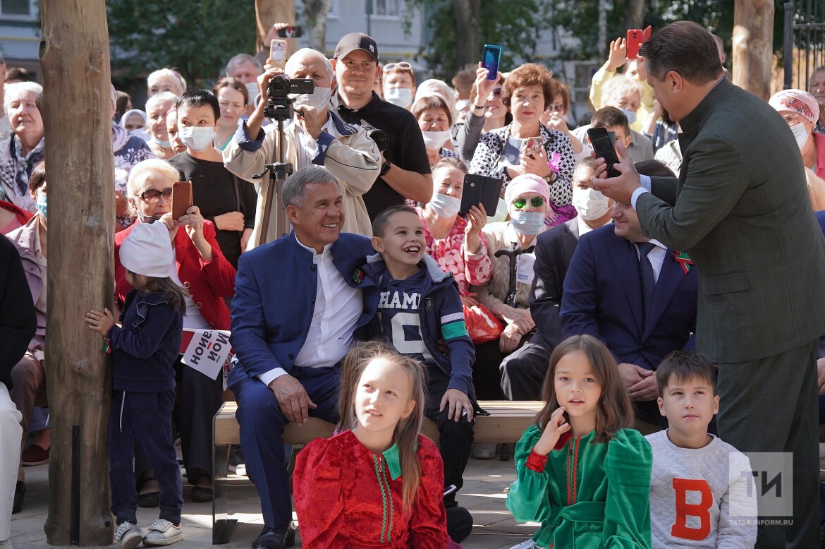 Рустам Минниханов поздравил всех присутствующих с Днем республики, а также обновлением придомовой территории.