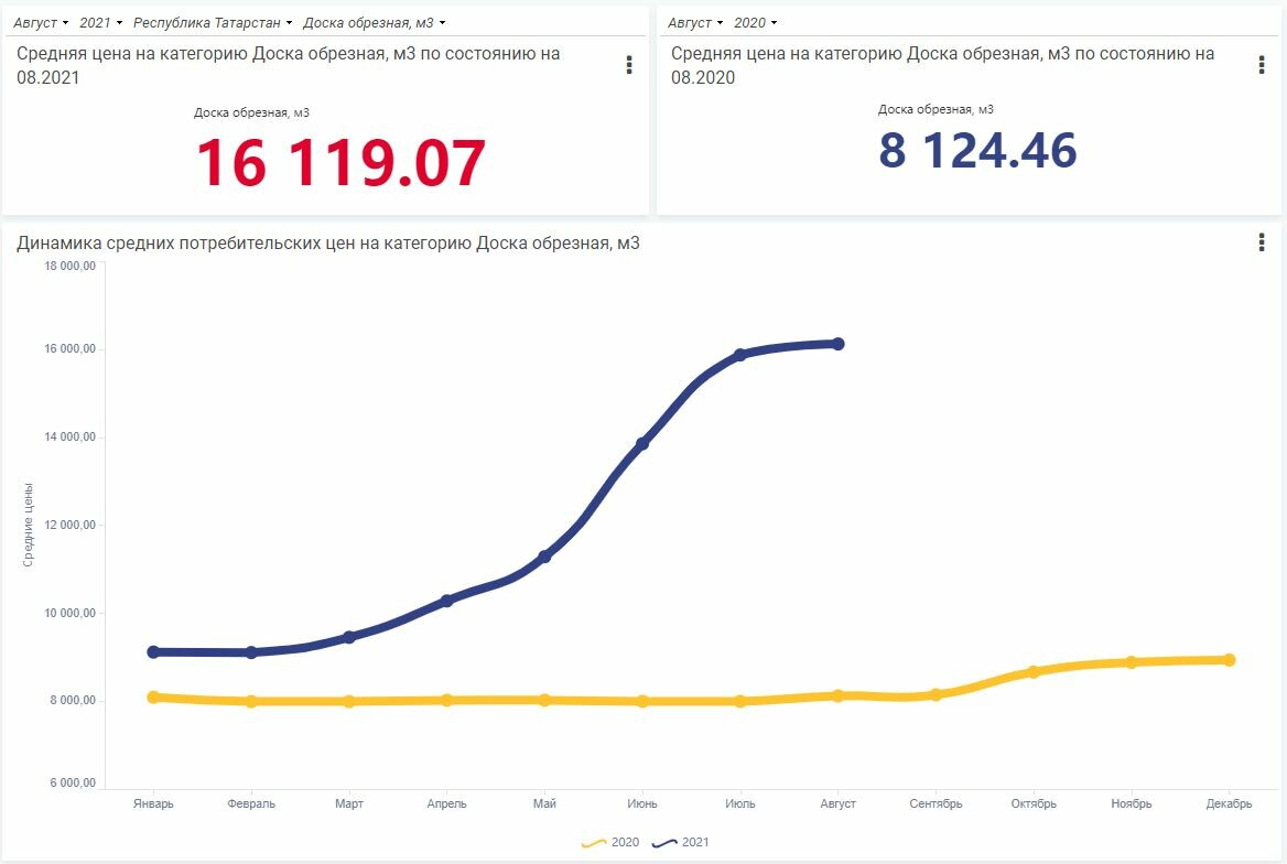 Согласно расчетам Татарстанстата, для конечных потребителей существенно дороже за год стали стоить металлочерепица (рост в 1,7 раза, до 552 рублей за кв. метр), плиты ОСП (OSB, рост в 3 раза – до 508 рублей), еврошифер (цены выросли на 22% – до 3,5 тыс. рублей за 10 кв. метров), рубероид (больше на 28% – до 301 рубля за 10 метров), кирпич (рост на 21% – до 15,4 тыс. рублей за 1 тыс. штук) и доски (цены увеличились вдвое – до 16,1 тыс. рублей за куб. метр). Подорожали и другие материалы, в том числе отделочные: керамическая плитка, обои виниловые, ламинат, линолеум, цемент, оконнное стекло, краска.