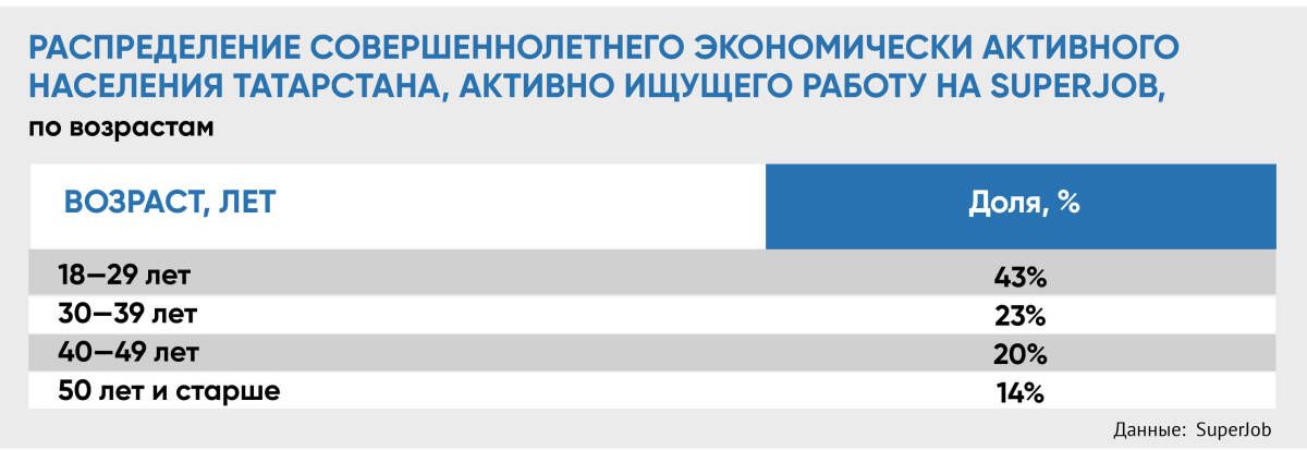 «35% соискателей среднего возраста (35-44 года) ждут карьерного роста, при этом в этой группе высока доля недавно получивших повышение (7%). Они чаще меняют работу осознанно, стремясь к повышению дохода или статуса», – подчеркнули специалисты ЦЗН РТ.