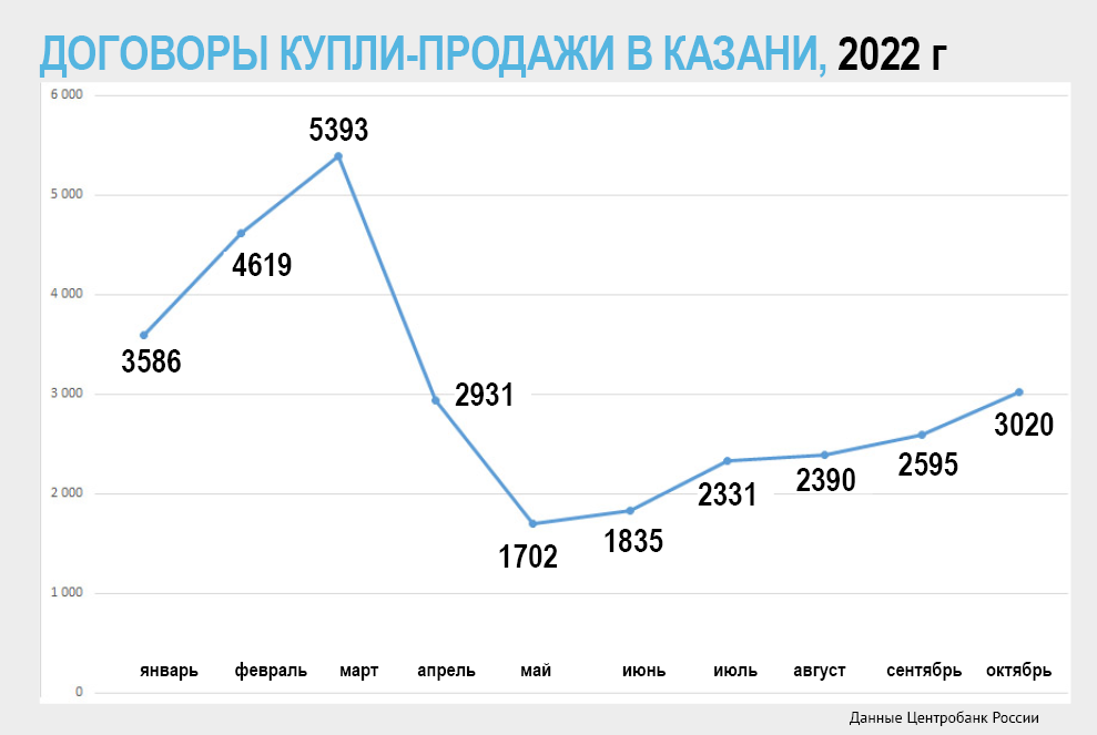 - Стоит учитывать, что статистика Росреестра не отражает реальное положение дел на рынке, а передает его с задержкой в месяц-полтора. То есть в сентябре регистрируются сделки, заключенные в конце лета, а в октябре — в начале осени. Поэтому статистике Росреестра еще предстоит падение по итогам ноября. Как мы помним, два месяца назад в связи с мобилизацией продажи здорово просели или вовсе замерли почти во всех сферах розничной торговли. Рынок недвижимости сам по себе в силу своей специфики менее емкий, поэтому на нем это отразилось заметнее всего, - говорит директор группы компаний СМУ-88 Наиль Галеев.
