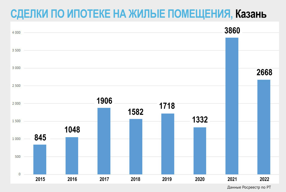 В октябре Росреестр зарегистрировал в Казани 2668 сделок по ипотеке. Это на 45% меньше, чем в октябре прошлого года. Но не будем делать поспешных выводов. Вновь сравним данные за последние восемь лет.
