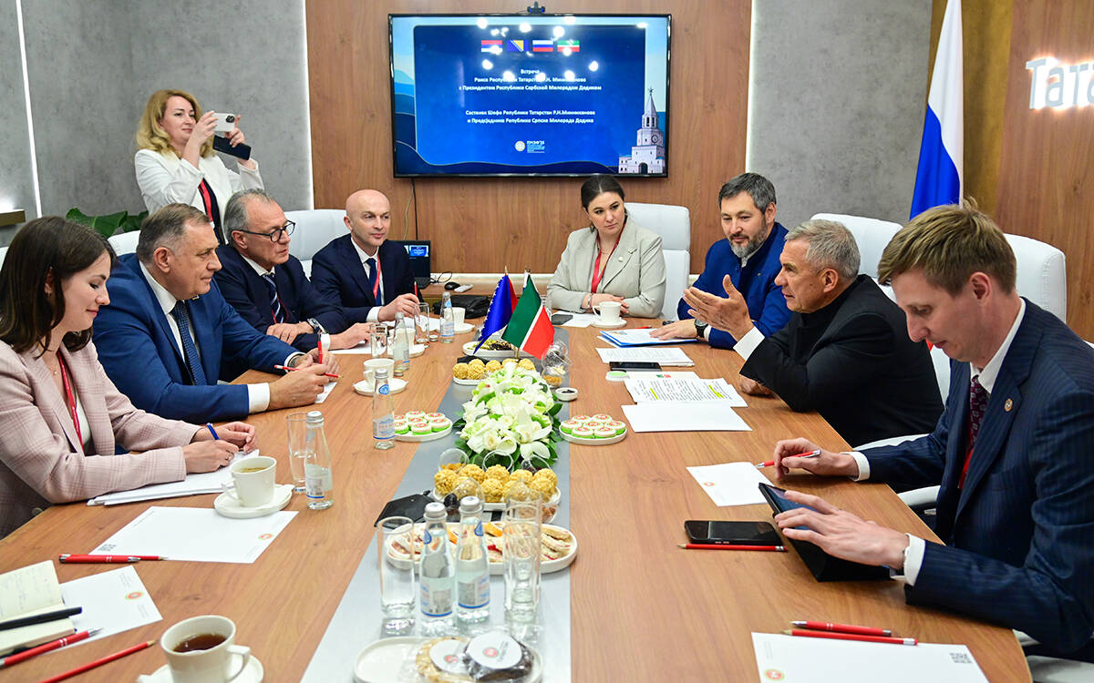 По первому пункту деловых активностей Минниханова мы отчитались выше. А в части международных контактов руководитель Татарстана накануне провел еще две встречи – с президентом Республики Сербской Милорадом Додиком и с первым заместителем председателя Кабинета министров Кыргызской Республики Данияром Амангельдиевым.