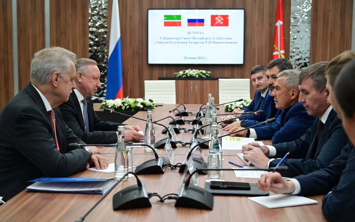 Сегодня в первой половине дня Рустам Минниханов продолжил и серию встреч с главами регионов на ПМЭФ-2025. В последний день ПМЭФ-2025 Минниханов встретился с губернатором Санкт-Петербурга Александром Бегловым и главой Ленинградской области Александром Дрозденко.