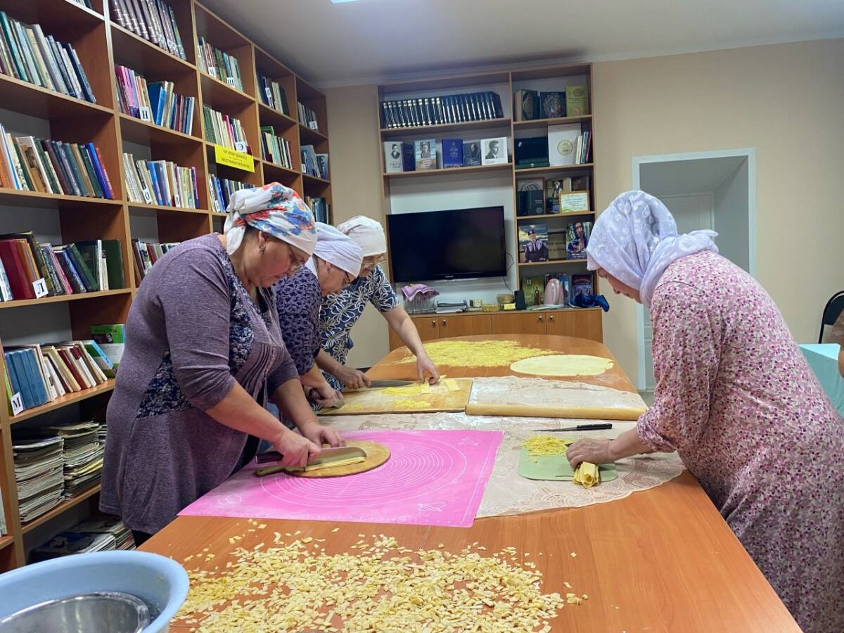 В Верхнекорсинской сельской библиотеке участницы женского клуба «Ак Калфак» изготовили домашнюю лапшу.