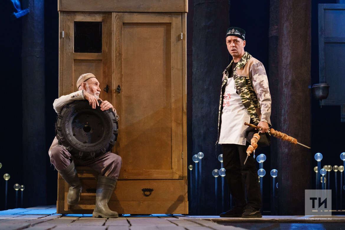 Стоит сказать, что в предпремьерном показе спектакля в нем участвовал и Ильдус Габдрахманов. Но на премьере его не было, то есть роль придорожного продавца посчитали лишней и сократили. Габдрахманов сам не стал объяснять, почему так получилось. Его фотографии в этой роли есть в фотогалерее ИА «Татар-информ», можете их посмотреть.