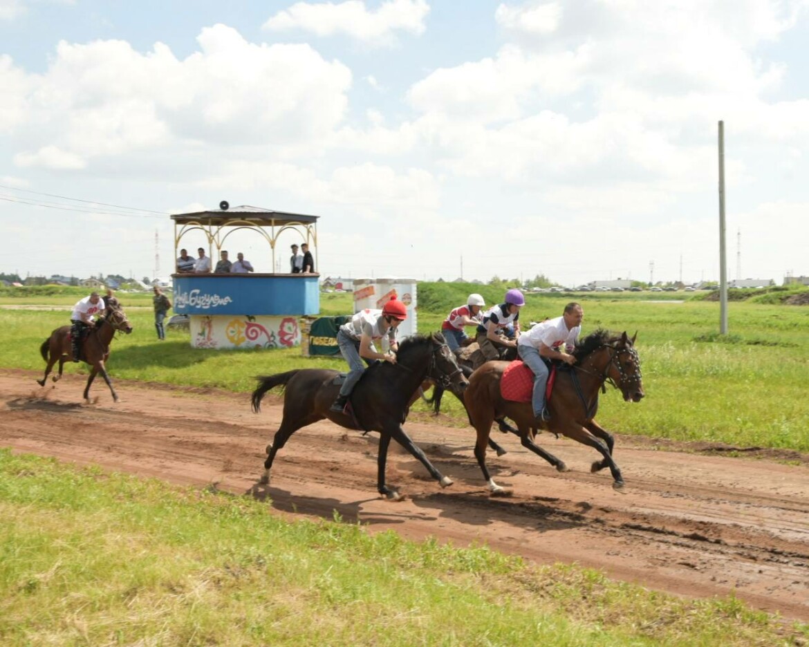 Самая зрелищная часть программы — скачки. Погода сегодня позволила провести соревнования. Изюминка Сабантуя — национальная борьба на лошадях «Аудырыш».