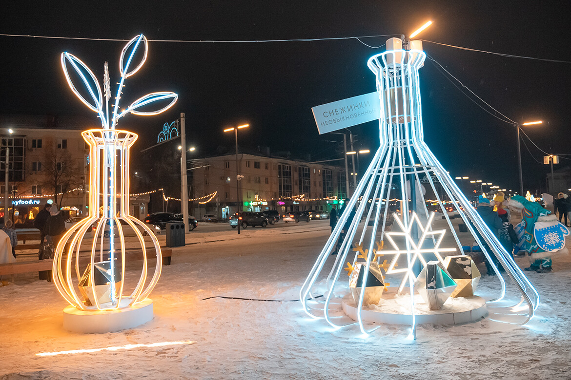 Тематика украшения города в этом году — математика и физика. Тематикой новогодних иллюминаций неспроста выбраны точные науки, так как это одна из основополагающих многих профессий, в первую очередь нефтяных.