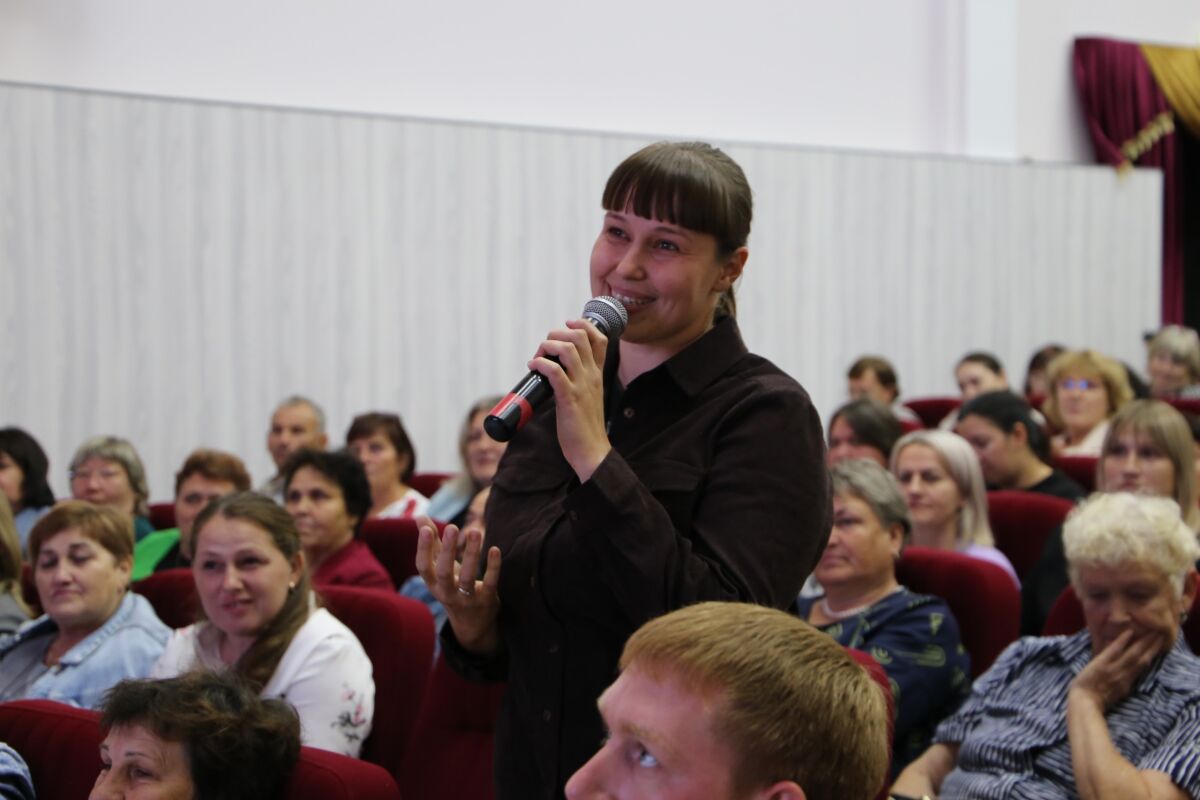 Алексеевцы задавали вопросы и делились пожеланиями по развитию родного района. Вопросы в большинстве случаев касались состояния дорог и благоустройства территории.
