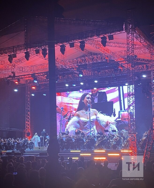 «Добрый вечер, Казань, для меня огромная радость сегодня петь для всех вас. Спасибо вам большое за то, что пришли на наш концерт. Я вас поздравляю с праздником – с Днем города и с Днем республики – желаю всем счастья и добра», – поприветствовала гостей фестиваля оперная дива.