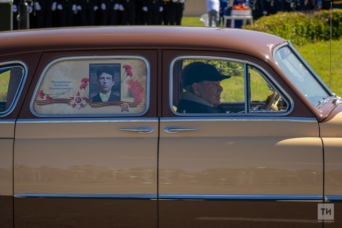 Ближе к началу Парада Победы прибыли Раис Татарстана Рустам Минниханов и Государственный Советник РТ Минтимер Шаймиев. Руководитель республики приехал на автомобиле «Победа», на стекле которого была размещена фотография его дяди Галимзяна Минниханова, служившего во время Великой Отечественной войны в 359-м стрелковом полку 50-й стрелковой дивизии Западного фронта.