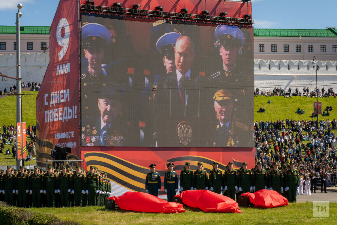 Главной площадкой празднования 9 Мая в Казани стала площадь Тысячелетия, где состоялось торжественное прохождение войск Казанского гарнизона в честь 78-й годовщины Победы в Великой Отечественной войне. До начала торжественного мероприятия казанцы смогли увидеть портреты ветеранов, объединенные в видеоряд, который транслировался на главном экране.