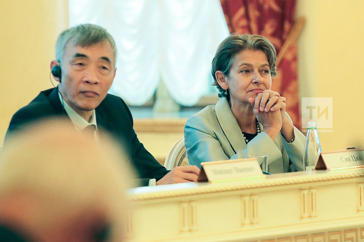 Он также поблагодарил бывшего генерального директора ЮНЕСКО Ирину Бокову за оперативность принятия решений по комплексу Древнего Болгара и Успенскому собору острова-града Свияжск, а Президента Татарстана и все население республики – за активную поддержку во время реализации проектов.