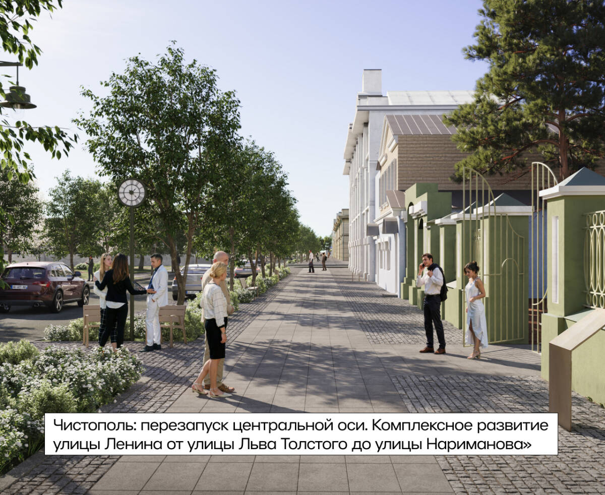 В этой же категории выиграл Чистополь с проектом «Перезапуск центральной оси. Комплексное развитие улицы Ленина от улицы Льва Толстого до улицы Нариманова». На реализацию инициативы город на Каме получит такую же сумму, как и Зеленодольск.