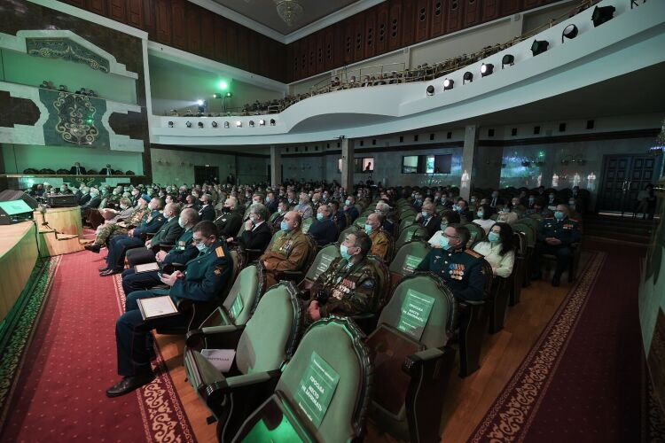 «С праздником, уважаемые коллеги! Защита рубежей, уважительное отношение к ветеранам, воспитание на их примере подрастающего поколения — это всегда было сильной стороной нашей страны. Конечно, каждый год каждого из периодов нам приходилось защищать государственные рубежи. И каждый из нас понимает, что мы отдаем великую дань уважения [защитникам] и говорим „спасибо“», — сказал со сцены Василь Шайхразиев.