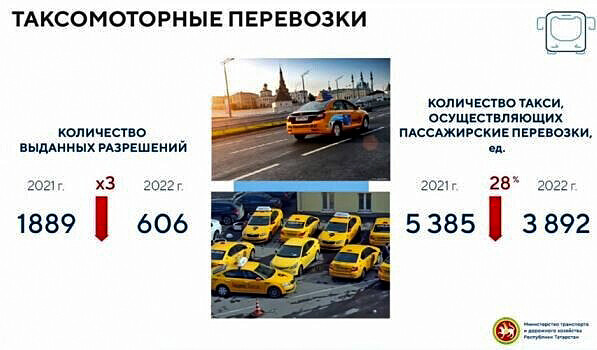Он добавил, что как следствие уменьшается количество действующих разрешений. Дополнительным барьером для индивидуальных перевозчиков является установленная в Татарстане цветовая гамма автомобилей, используемых в качестве такси.