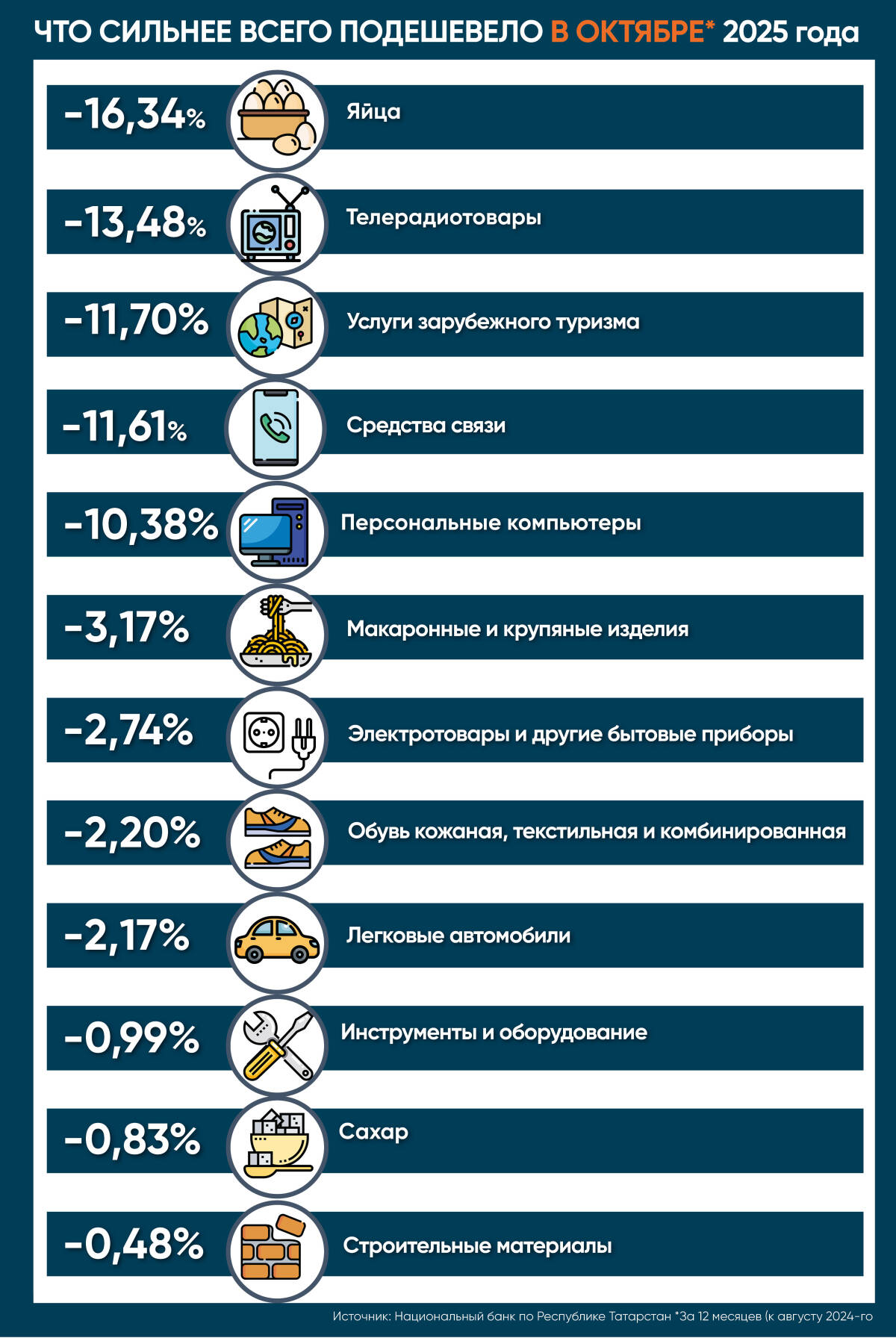В продовольственном сегменте в октябре заметно подорожали куриные яйца (на 15,41% к сентябрю), хотя благодаря росту производства цены на них все равно оставались на 16,34% ниже, чем год назад. Месячный рост цен в республике оказался выше, чем по РФ в целом, не только потому, что птицефабрики продолжали переносить в цены накопленный рост затрат, в том числе на упаковку, корма и ветеринарные препараты. «Отчасти это связано с тем, что в марте – июле цены на яйца в Татарстане снижались намного активнее, чем по стране. Чтобы компенсировать рост затрат, региональные птицефабрики в октябре повысили цены заметнее», – добавили в Нацбанке РТ.