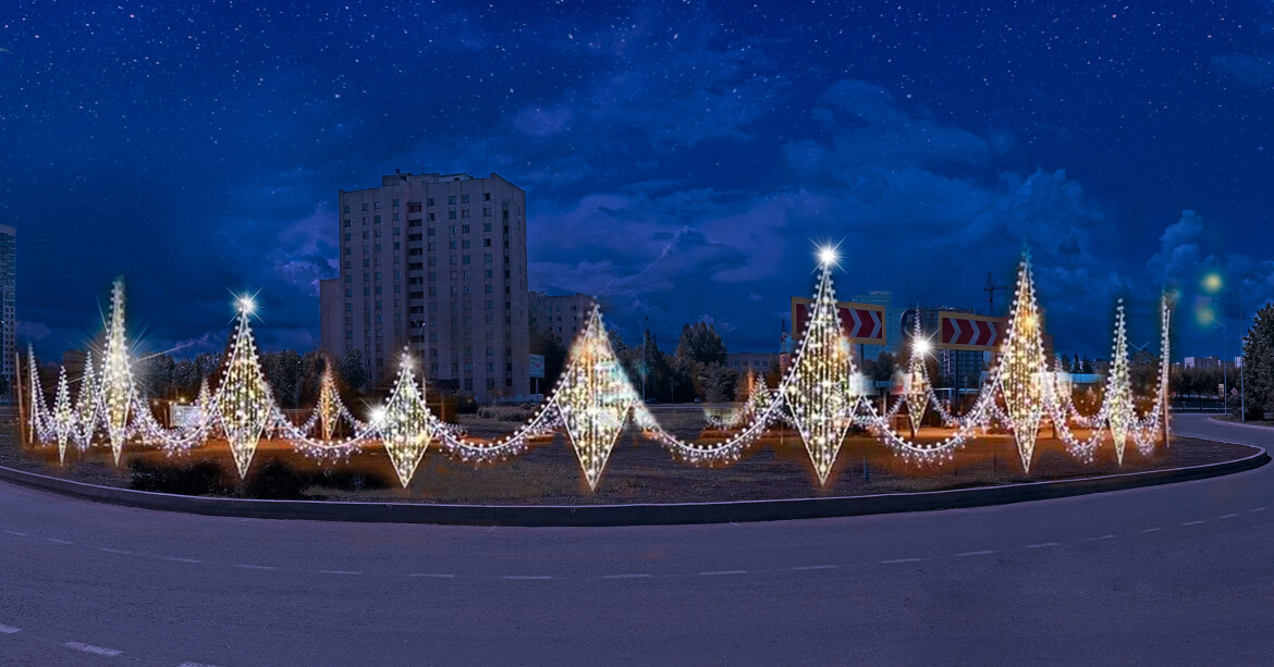 «Тюльпан — это стилизованный символ, который изображен на гербе нашего города, — пояснила Малика Шамсиева. — Здесь все это будет дополнено сверху снежинками и украшено стробоскопами для создания эффекта переливающихся сверкающих бутонов».