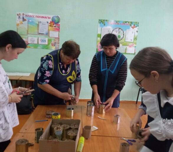 Затем ученики самостоятельно работали с картоном, одни разрезали толстые листы бумаги на ленту, а другие скручивали фитили для свечей, укладывали их в банки. Важную часть свечи занимает парафин. Спонсорскую помощь школьникам оказали сельские предприниматели Раиф и Гульнур Салиховы, они привезли воск.