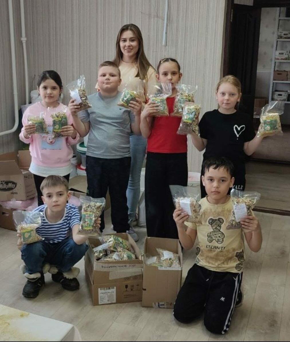 Всего в этот день волонтеры группы «Вкус дома Мензелинск» вместе с детьми расфасовали 47 пакетов супа харчо, 18 пакетов щей (овощной набор), 36 пакетов рассольника, 48 пакетов борща (овощной набор) и 330 штук медовых князевских пряников.