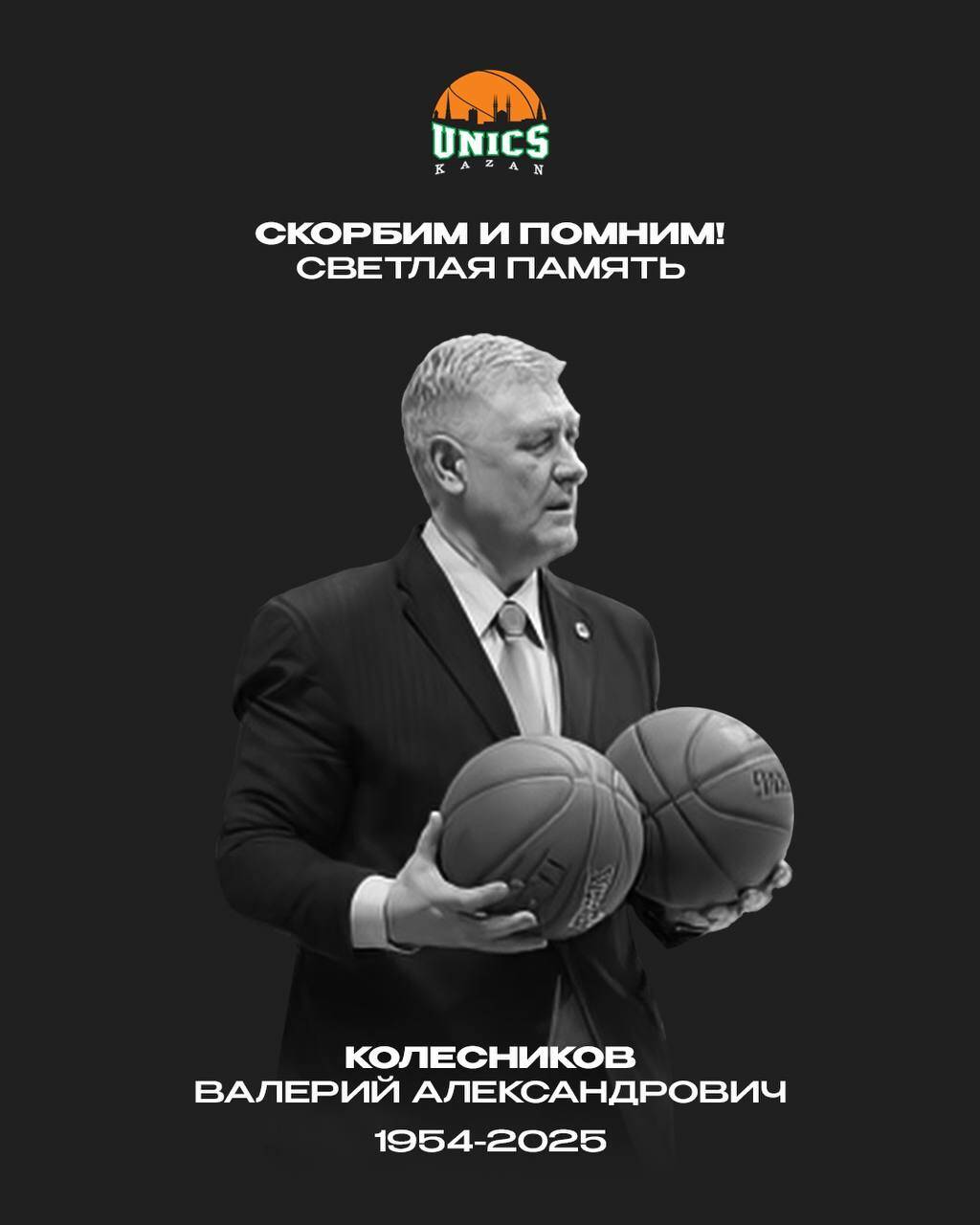 Накануне, 16 января, на 71-м году жизни скончался бывший начальник команды БК УНИКС, спортивный директор молодежной команды УНИКС-2, заслуженный тренер России Валерий Колесников. Об этом пресс-служба баскетбольного клуба сообщает в своем Telegram-канале.
