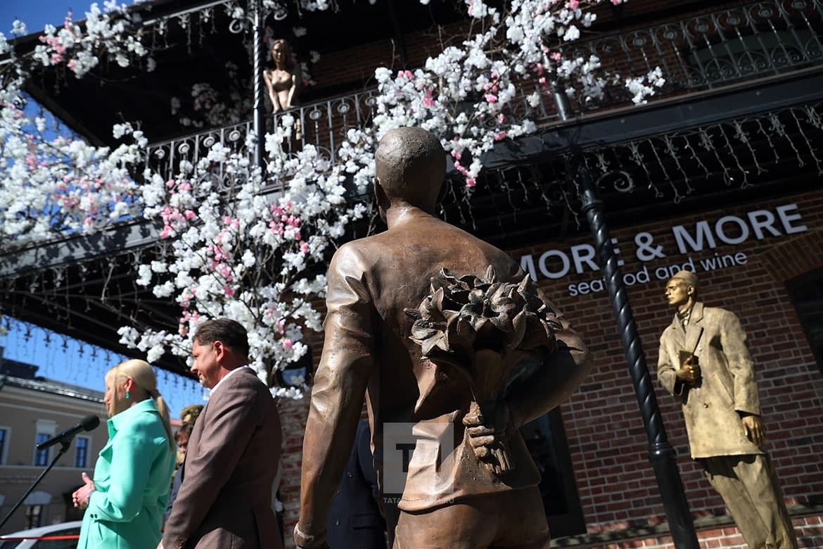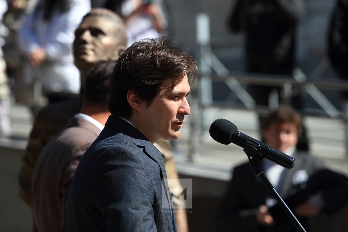 «Этому проекту год, работу начали еще в прошлом году. Отливали фигуры в Казани. Образы сделали современными, а не историческими, чтобы молодые люди, которые живут в наше время, ассоциировали с этими фигурами себя. Прежде в этом здании был кинотеатр, недалеко был ЗАГС, в здании теперь ресторан — хотелось, чтобы эти романтичные образы были „примеримы“ к каждому человеку. К тому же скульптур на подобную тему в исторических костюмах по городам России много, мне хотелось сделать именно современные образы», — рассказал о своем новом произведении Фаниль Валиуллин.