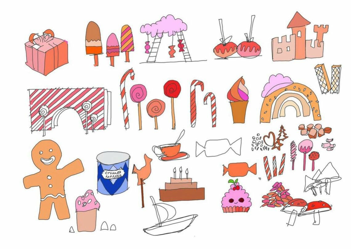 Найдется буквально всё: конфеты, мороженое, карамель, пряничный замок и даже баночка сгущенки. Все они будут узнаваемы, чтобы каждый смог ощутить добрые ностальгические чувства. Дополнением станут яркие элементы и фотозоны.