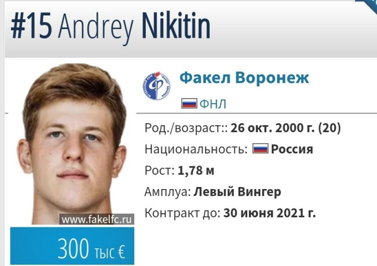По сведениям СМИ, за 20-летним игроком клуба ФНЛ также следят еще несколько клубов российской премьер-лиги. Матч «Факела» с «Дукаджини» закончился победой воронежцев со счетом 4:2. Никитин провел на поле все 90 минут, но результативными действиями не отметился.