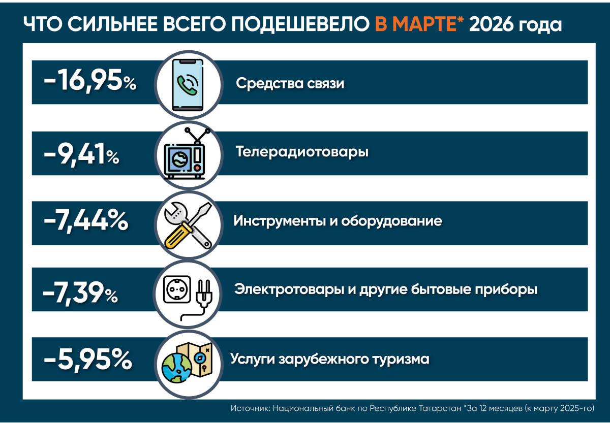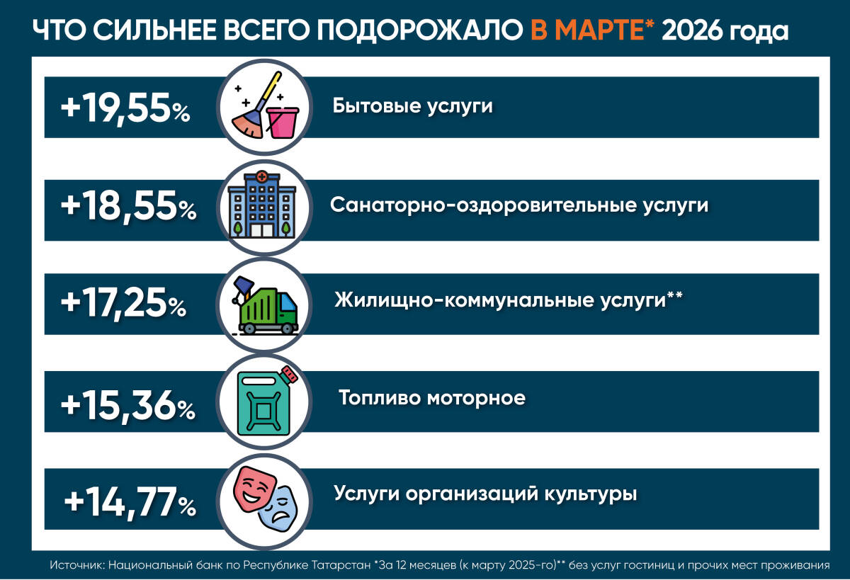 По данным Нацбанка РТ, в целом за год в республике больше, чем по стране, подорожали именно услуги (особенно бытовые, санаторно-оздоровительные и жилищно-коммунальные), а также продукты питания (например, сыр, мясные и рыбные продукты). А меньше – непродовольственные товары, причем некоторые из них (средства связи, телерадиотовары, обувь) подешевели сильнее, чем по РФ в целом.