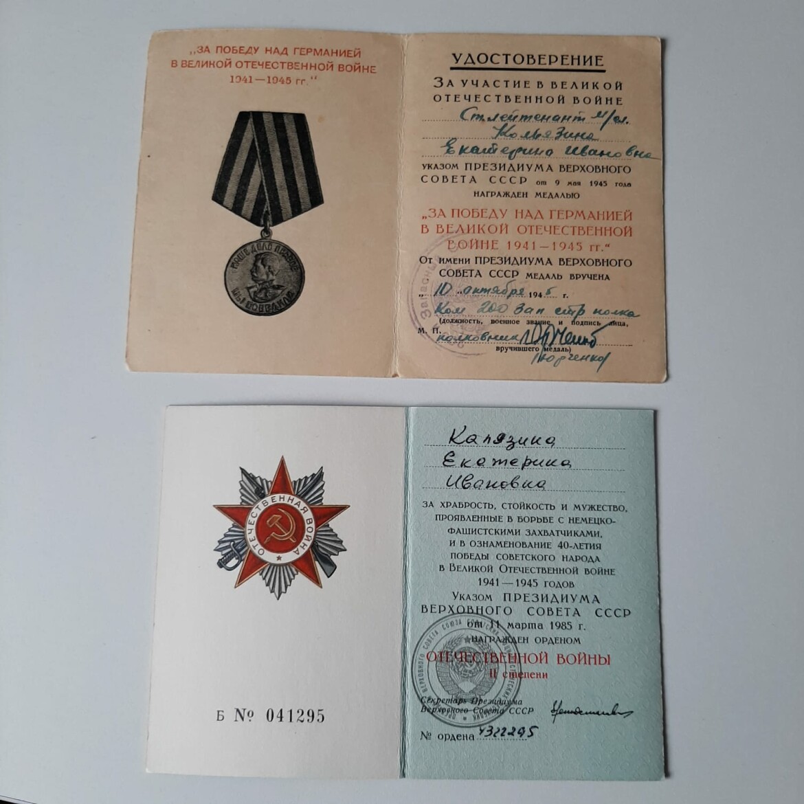Екатерина Калязина награждена орденом Отечественной войны, медалью «За победу над Германией в Великой Отечественной войне 1941-1945гг.», юбилейными медалями.