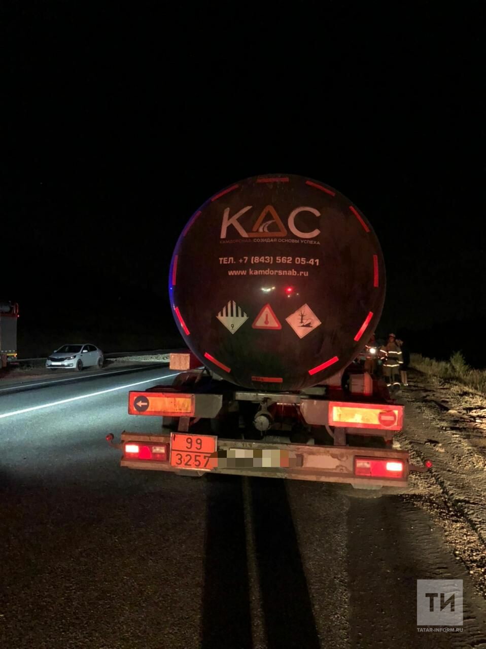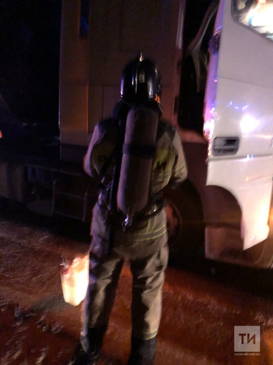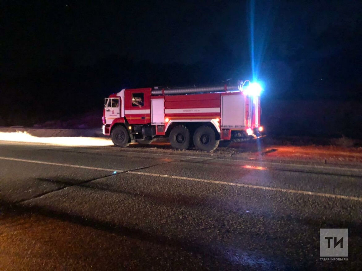 Сообщение о том, что на трассе Москва – Уфа в Верхнеуслонском районе республики у деревни Савино горит грузовик-битумовоз DAF, пришло накануне в 21.45.