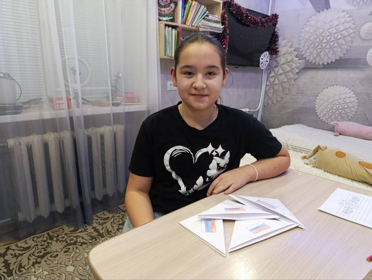 Адилия и сейчас готовит праздничные письма. Девочка уверена, ее поздравления непременно поднимут боевой дух участников СВО. Все посылки с письмами и разными сладостями она с мамой передает через волонтерский пункт, расположенный в торговом центре «Эдем».