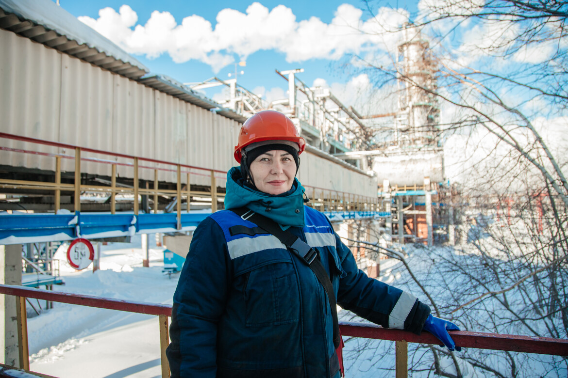 «За те четыре года, что я здесь, не было ни одного дня, чтобы мне не хотелось идти на смену. Всегда приятно приходить на работу, когда ты знаешь, что тебя там поддержат, что нужно расскажут и объяснят. Все смены у нас дружные. Юбки, платья и каблуки остаются за дверцей шкафчика. Надеваю спецодежда, и вот я – аппаратчик. Рабочее место мое – за экраном монитора и непосредственно на установке. Чуть только система сигнализирует о затруднениях технологического процесса, мы бежим с мальчишками на установку, чтобы разобраться на месте», – рассказала она.
