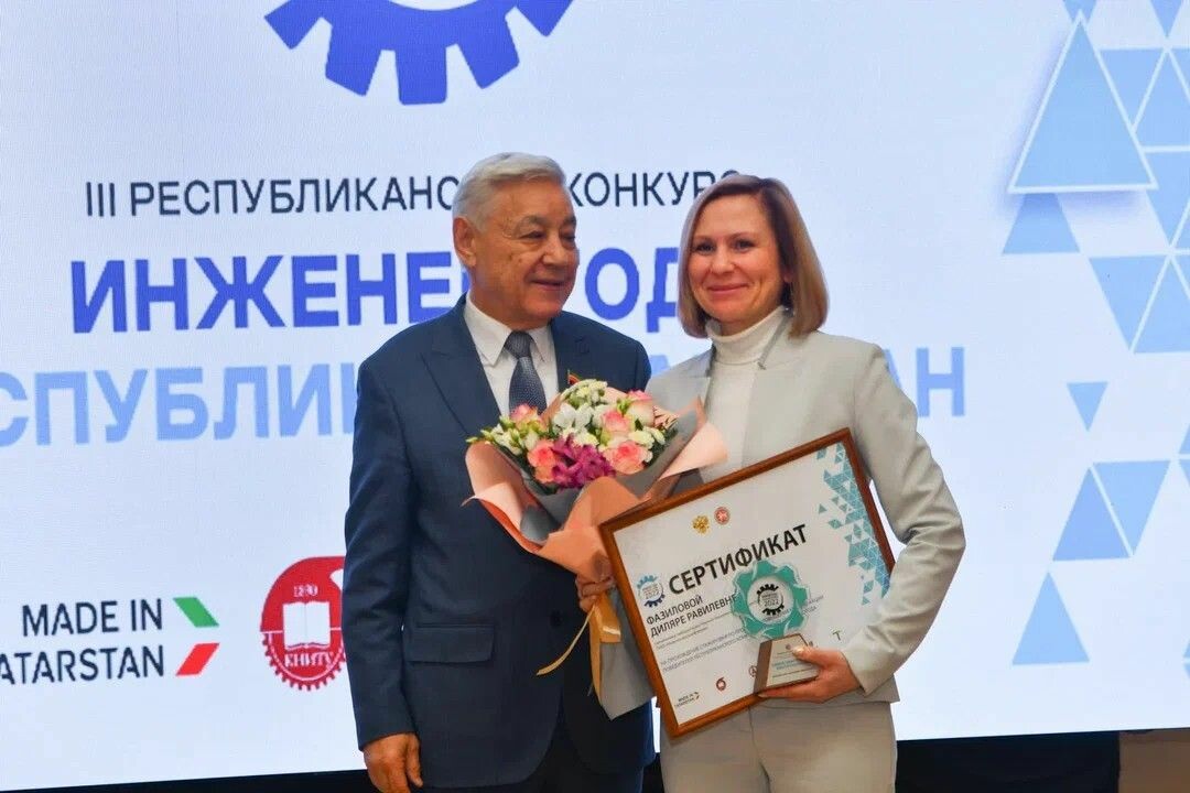 Сотрудник нижнекамского предприятия СИБУРа Диляра Фазилова удостоилась первого места в престижном республиканском конкурсе «Инженер года 2022». Она стала лучшей в номинации «Опыт, достижения, компетентность». Награду представительница «Нижнекамскнефтехима» получила из рук Председателя Государственного Совета Татарстана Фарида Мухаметшина во время чествования победителей конкурса. Награждение состоялось в Торгово-промышленной палате РТ 19 декабря.
