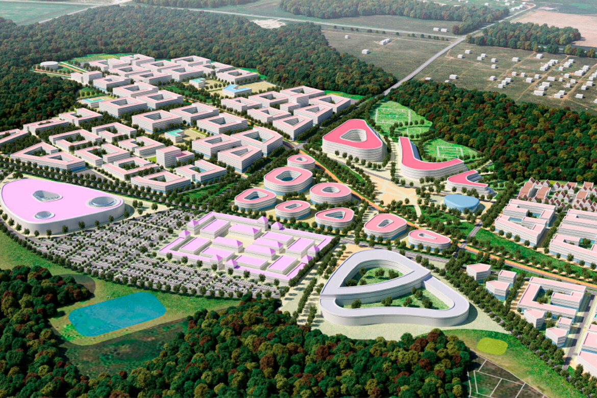В целом городок, как ожидается, будет включать технопарки, промышленные парки, две школы, девять детсадов, учебный центр e-com, арт-центр, культурный центр, поликлинику, молл, спортцентр и стадион.