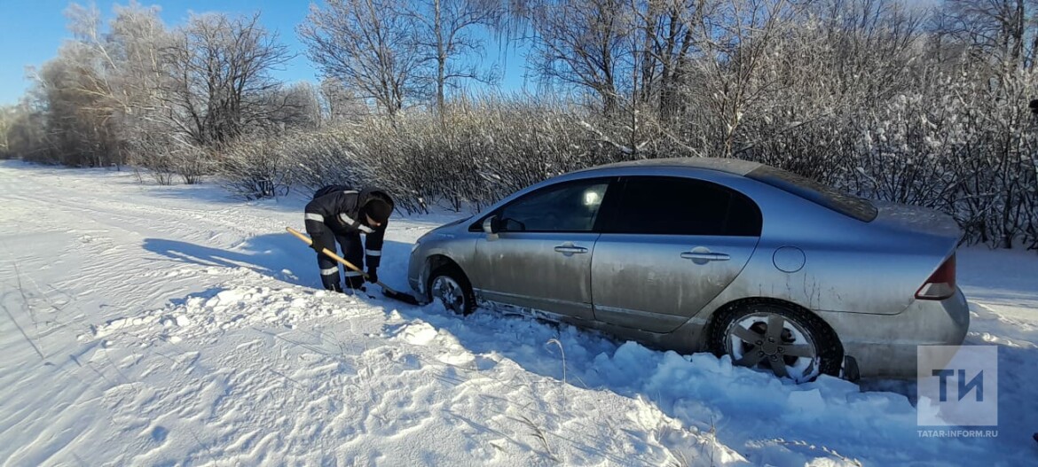 По номеру вызова экстренных служб 112 поступило сообщение, что в Альметьевском районе, на Ямашевском поле автомобиль застрял на снежной дороге. В салоне авто замерзают два человека.