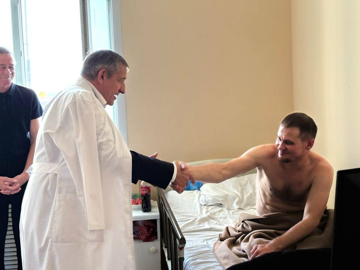 Глава Лаишевского района Ильдус Зарипов посетил в районной больнице бойца специальной военной операции Руслана, который проходит курс реабилитации после ранения.