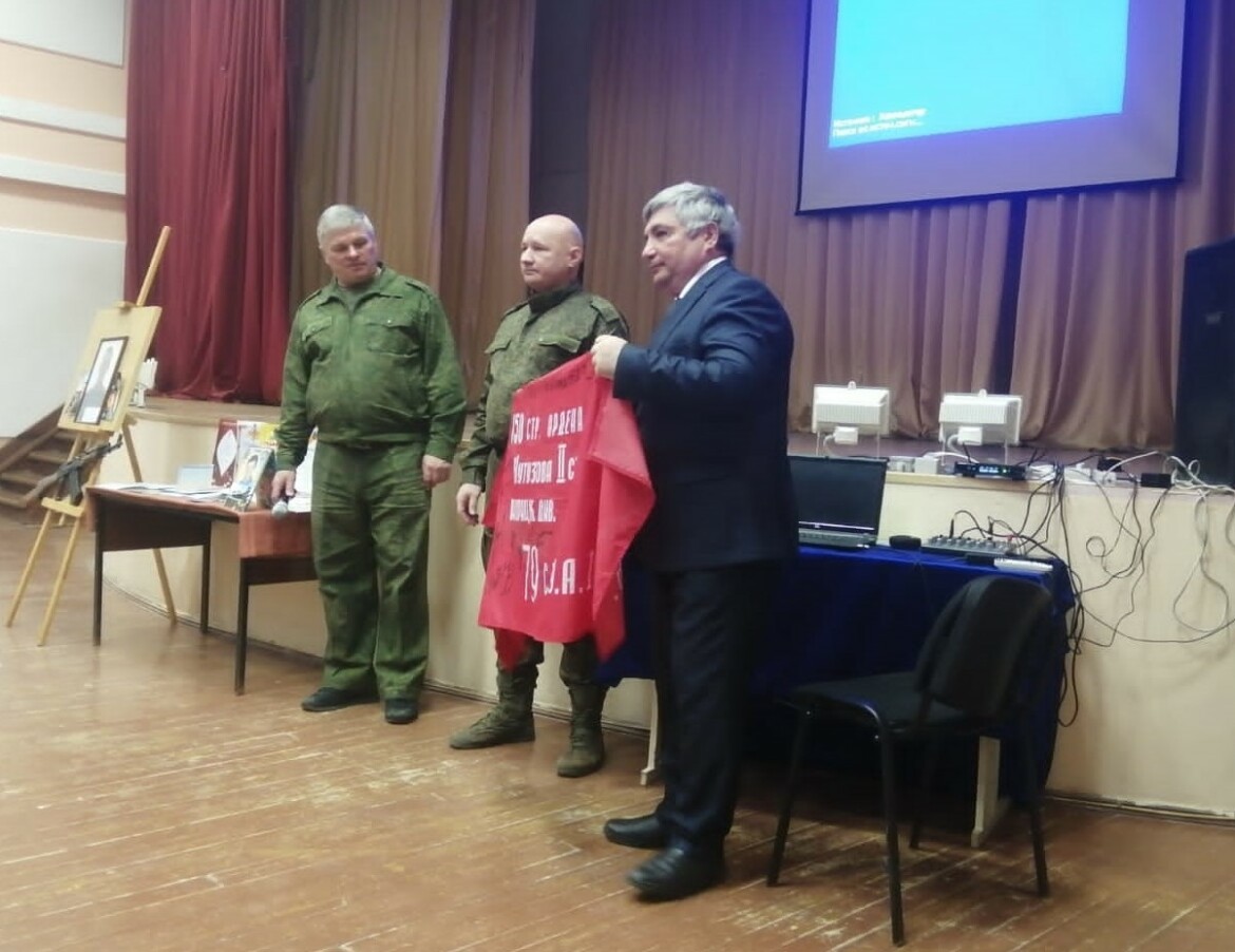 Он поделился со школьниками историями солдатских будней, а также передал учебному заведению боевое знамя батальона «Тимер», на котором расписались бойцы. По словам директора учебного заведения, знамя установят в холле школы в память о воинах, защищавших свою Родину.