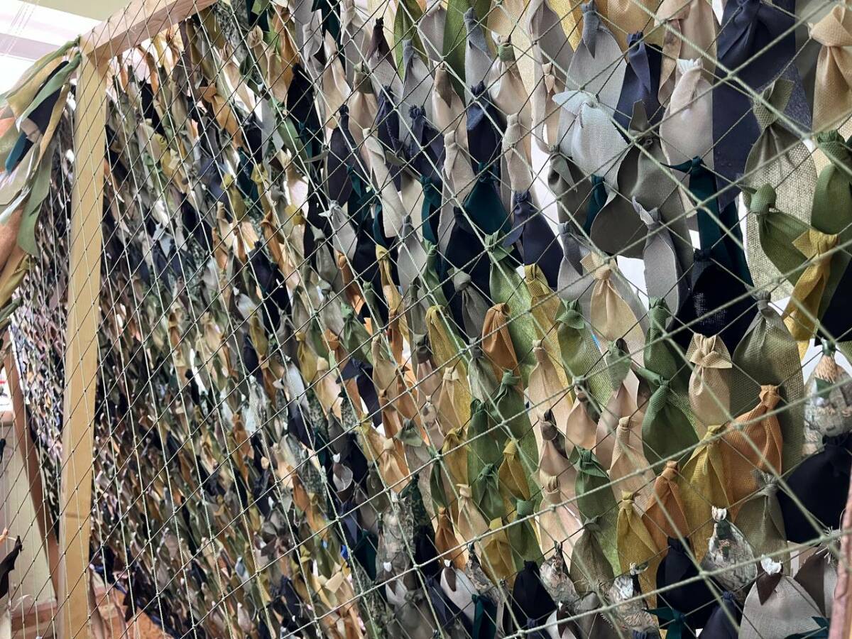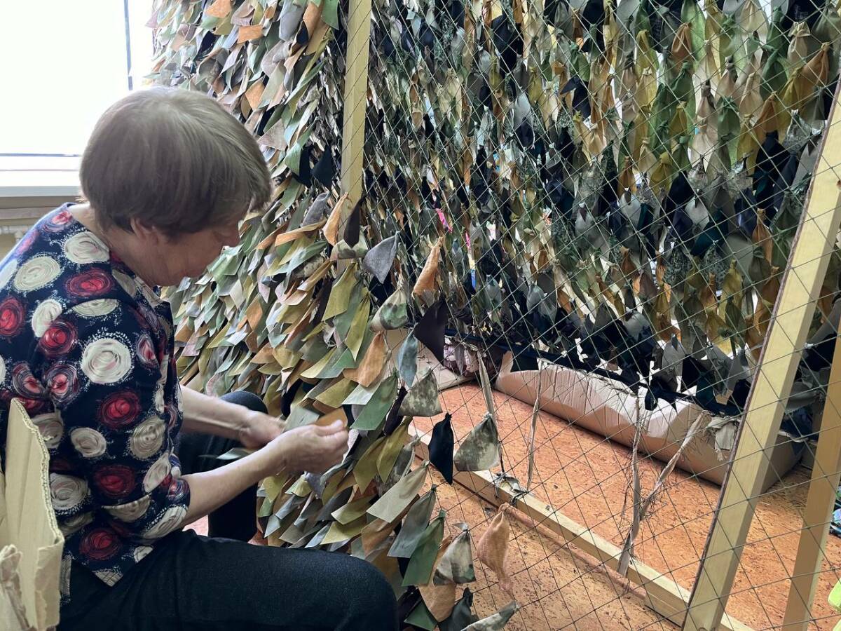 В Набережных Челнах волонтеры продолжают плести маскировочные сети. Активисты пробовали различные виды плетения, но остановились на галстучном — из обрезков тканей. Он позволяет имитировать листья и траву.