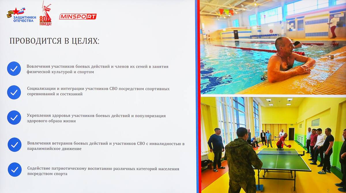 Гузель Удачина отметила, что сейчас активно ведутся подготовительные мероприятия, направленные на поддержку ветеранов СВО и расширение возможностей для занятия физической активностью