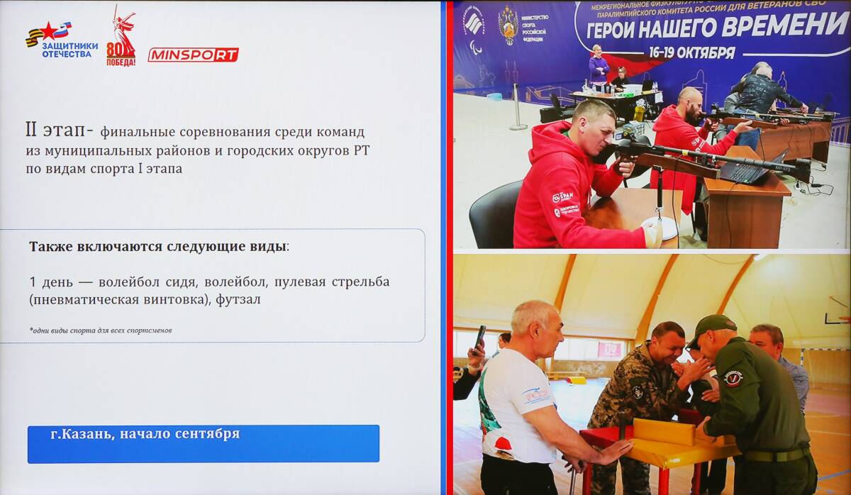 Она отметила, что сейчас активно ведутся подготовительные мероприятия, направленные на поддержку ветеранов СВО и расширение возможностей для занятия физической активностью. Планируется также проведение второго этапа Кубка Раиса РТ, в который войдут соревнования по стрельбе, армрестлингу, волейболу и другим видам спорта.