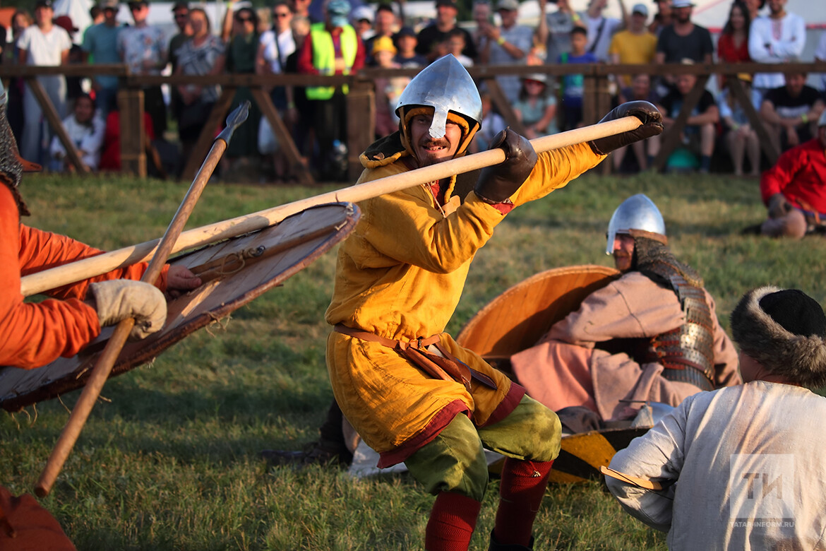 Тем не менее организатору, компании «Путешествие в прошлое» удалось пригласить на фестиваль в этом году около 300 бойцов. Запланированы как массовые игровые пешие бои – бугурты, командные 12 на 12 человек, так и так называемые пятерки Также организован большой индивидуальный турнир и конные поединки джостинги – те самые, участником которых на «Великом Болгаре» в 2022 году стал хранитель доспехов из коллекции Эрмитажа Андрей Богданов.