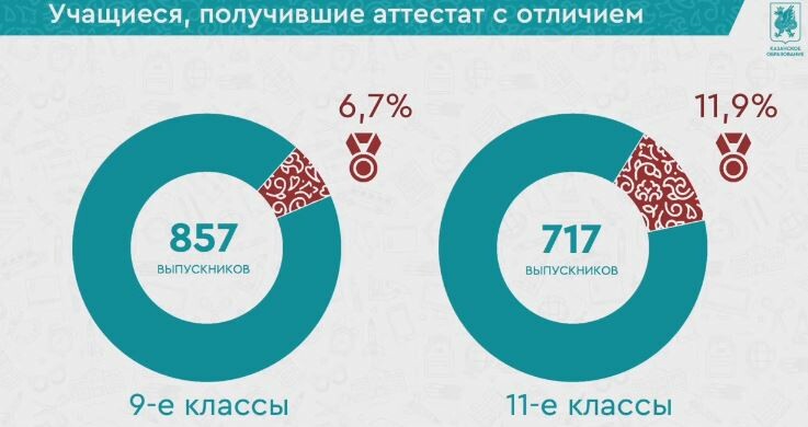Медалью «За особые успехи в учении» удостоены 717 казанских одиннадцатиклассников и 857 выпускников девятых классов. Это на 88 человек больше, чем в прошлом году. Данная награда является показателем отличной учебы в старших классах.
