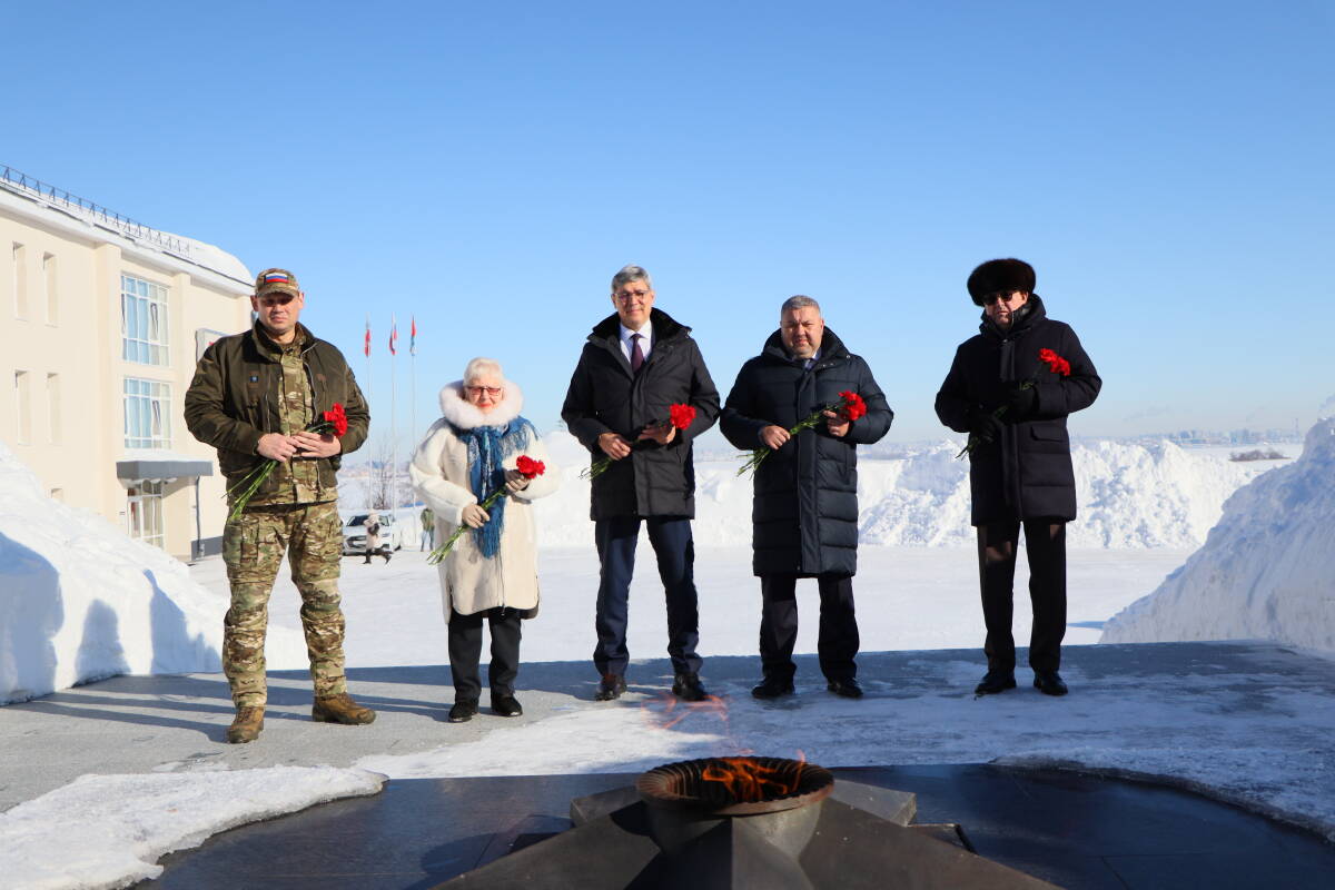 Перед началом заседания участники возложили цветы к отреставрированному монументу Победы в Великой Отечественной войне, где в 2025 году спустя более 30 лет после установки памятника был зажжен Вечный огонь. Память погибших почтили минутой молчания.