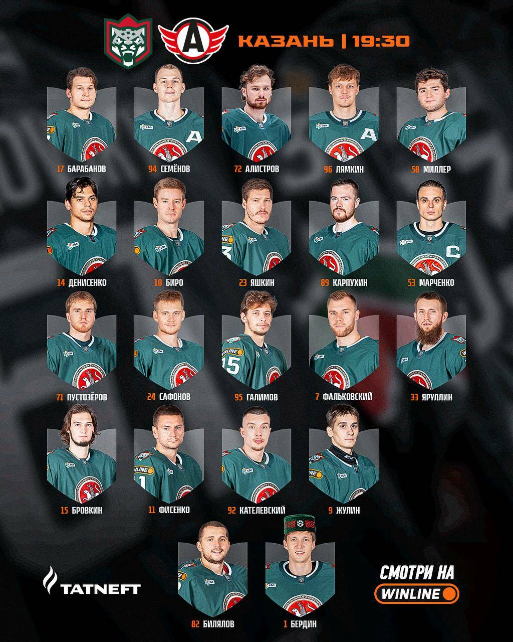 Казанский «Ак Барс» опубликовал состав на первый домашний матч в сезоне 2025/2026 против екатеринбургского «Автомобилиста».