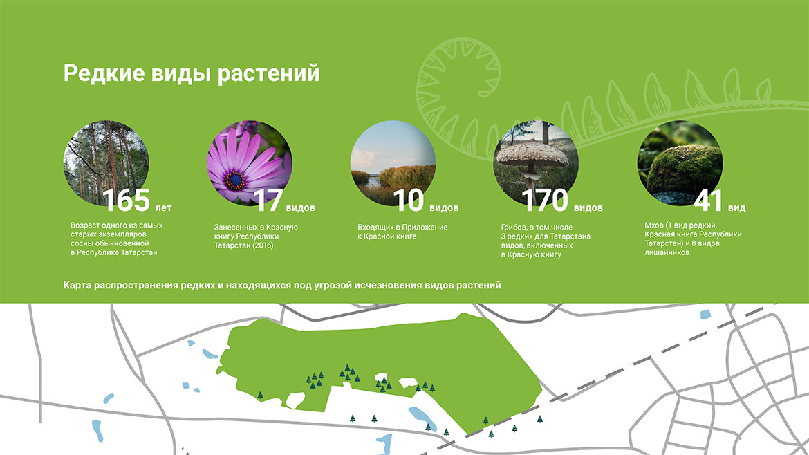 «Северная часть лесопарка находится за дорогой Казань – Зеленодольск. Протяженность лесопарка с запада на восток составляет порядка 13 км. На некоторых участках сохранились редкие виды животных и растений, занесенные в Красную книгу РТ, здесь только грибов около 170 видов», – добавил ученый.
